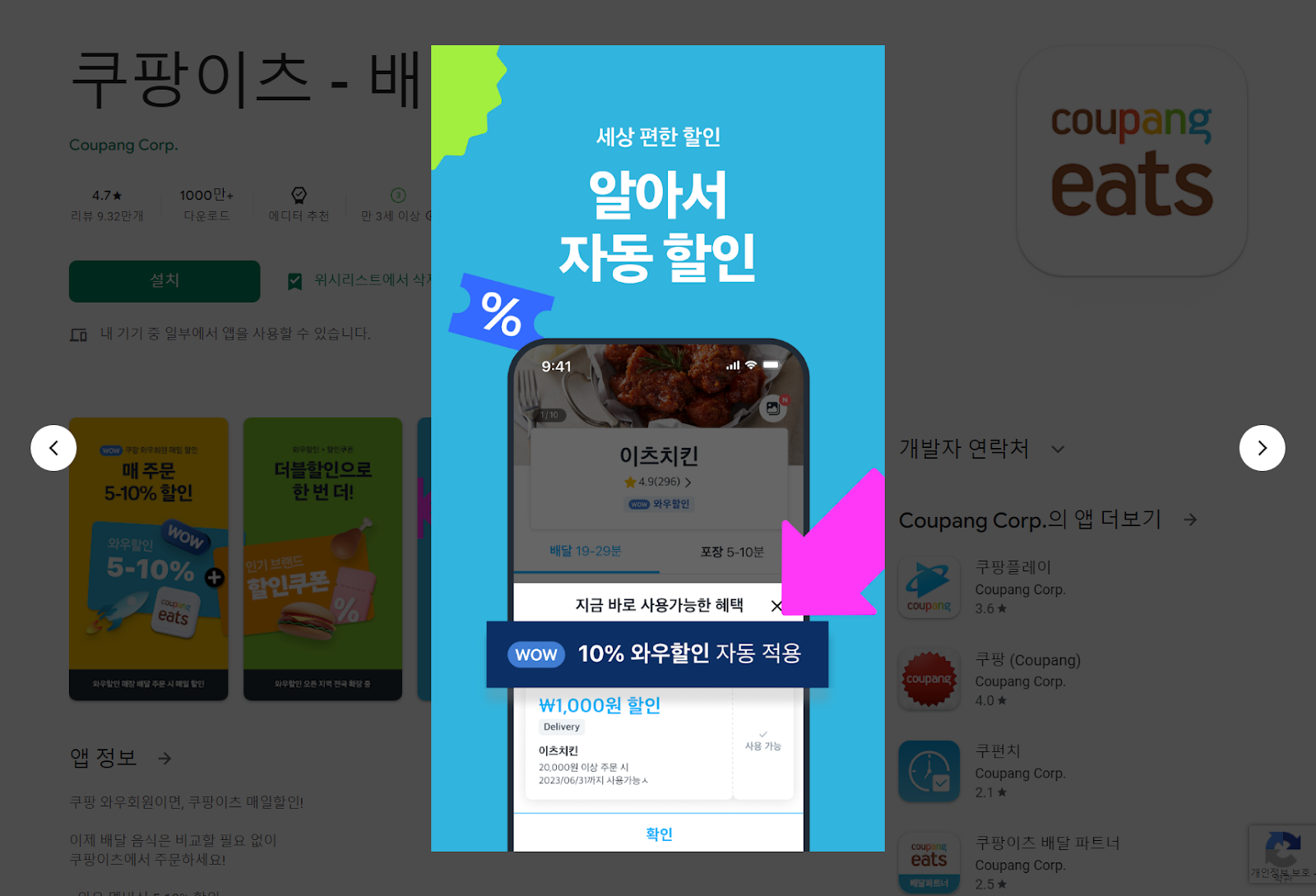 쿠팡이츠 - 배달앱 앱 정보